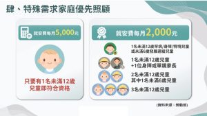 2.一名未滿12歲兒童加1名身障或單親家庭。